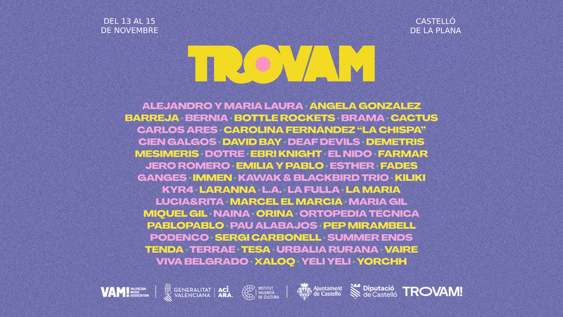 La tretzena edició de la Fira Valenciana de la Música Trovam ha revelat avui el seu programa complet, que tindrà lloc a Castelló de la Plana entre el 13 i el 15 de novembre. Als noms ja coneguts se sumen més de vint intèrprets, consolidant una edició amb mig centenar d’actuacions.